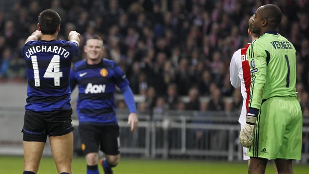 Javier Chicharito Hernández selló este jueves la victoria 2-0 del Manchester United sobre el Ajax de Holanda en los dieciseisavos de final de la Europa League.